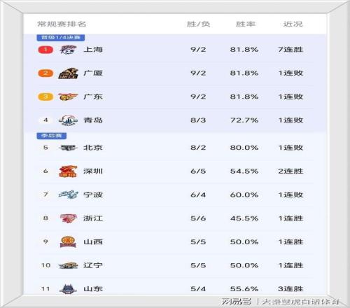 上海队近来状态也不俗,已经拿到了6连胜稳居第二集团。