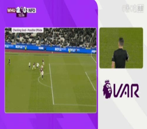 第51分钟,西汉姆联曾打进1球,不过新援卡斯特利亚诺斯越位回接,导致萨默维尔进球被吹无效。
