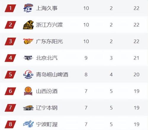 前8排名目前呈现一个3-2-3格局,前三名同积22分领跑,第4-5名夹在中间,第4的北京落后前三一个身位,第5的青岛领先第6一个身位,北京上不去青岛也下不来,第6-8同积19分,第9-12也是同积18分,第8的宁波领先第9-12名一个身位,不过这种局面也不会维持太久。
