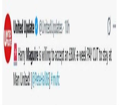 但据其报道,如果马奎尔愿意接受大幅降薪,每周少拿约8万英镑,并同意俱乐部新约的其他条件,就仍有可能留在球队。在报道中,英媒所说的是:if the England international is willing to take a substantial pay cut of about £80,000 a week,而社媒忽略了「if」的假设前提,并且将每周降薪8万英镑误解为「降薪至8万英镑」。